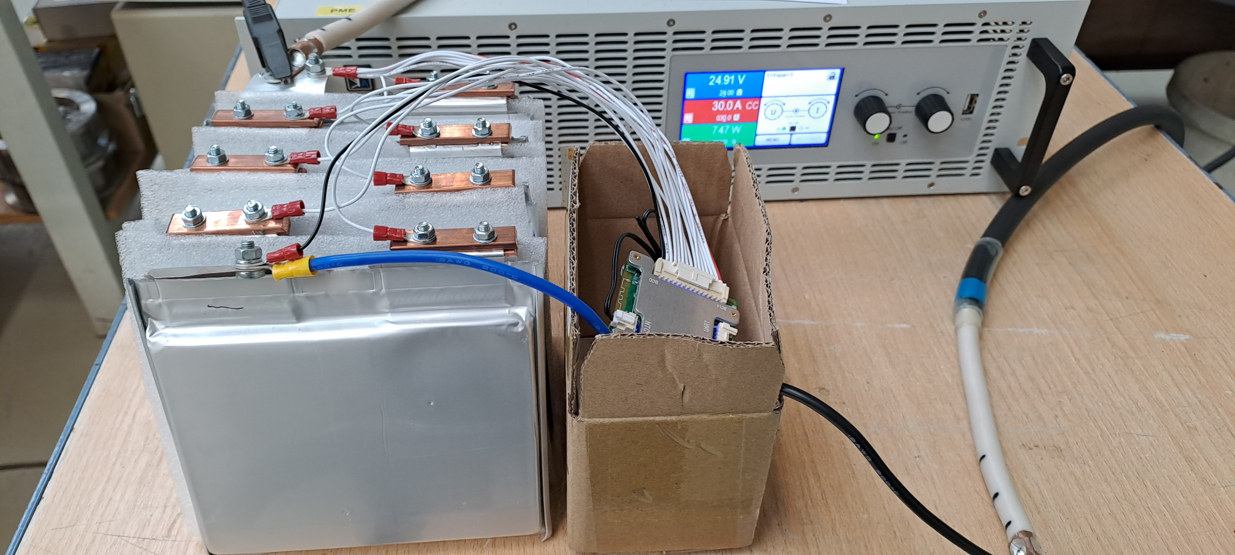 Das BMS hat als Hardwarelimit in der Software 38A hinterlegt. 90A werden da wohl nur für wenige Millisrkunden drüber huschen dürfen. Das BMS hat trotz korrekter Verkabelung nicht automatisch die Zellenzahl erkannt, manuell lies sich aber alles einstellen. Es balanciert auch nur beim Laden.