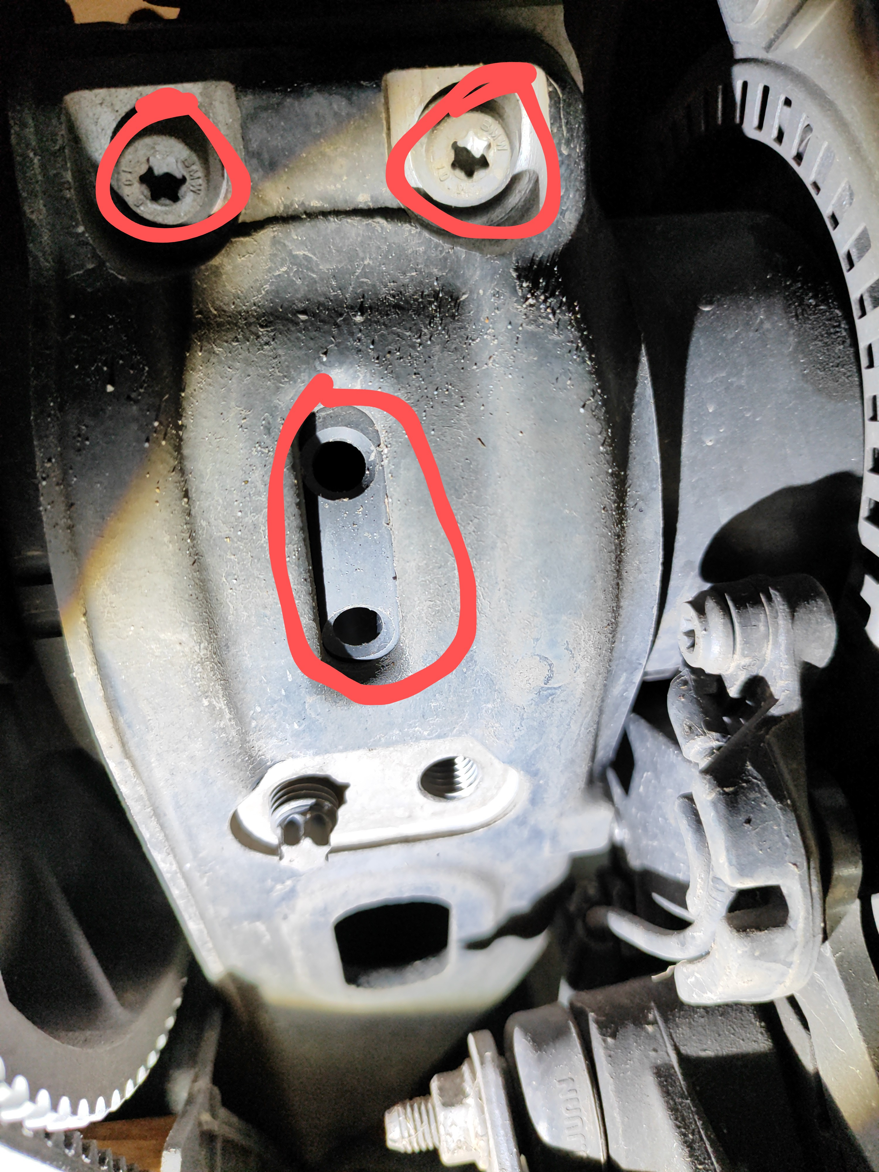 Ich hab mal etwas gegrübelt und zum Ergebnis gekommen es kann nur so sein das die beiden Torx Schrauben das ganze klemmen und über die Bohrungen mittels eines Stifts etc. gespannt wird. Eventuell hat die Aussentorxschraube auch noch was damit zu tun...Spannung halten. Das sieht man aber wenn es soweit ist.