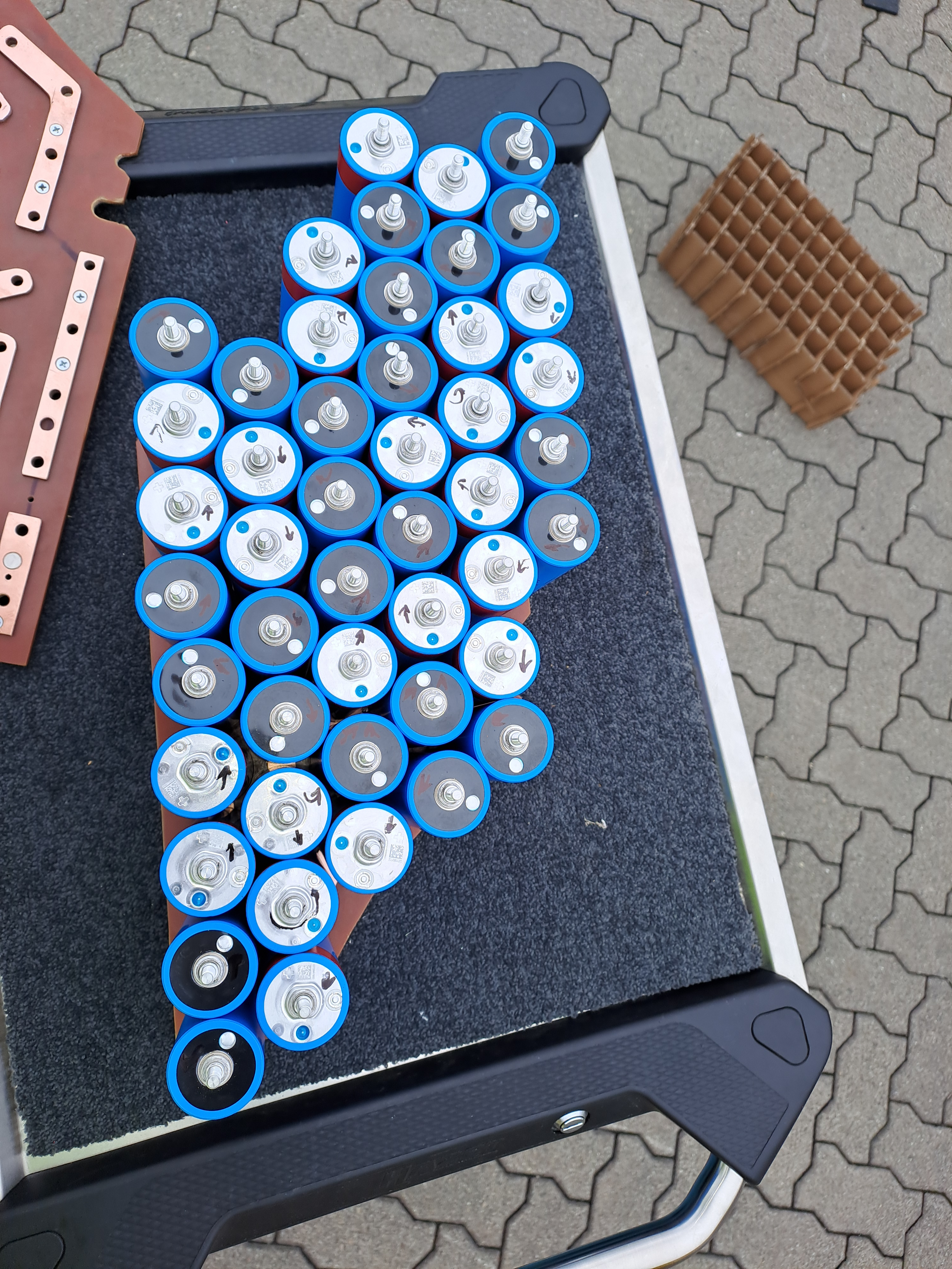 Geplant war ursprünglich 24S3P, also 72V 60Ah, dann wäre der Block aber nicht mehr einfach entnehmbar gewesen.