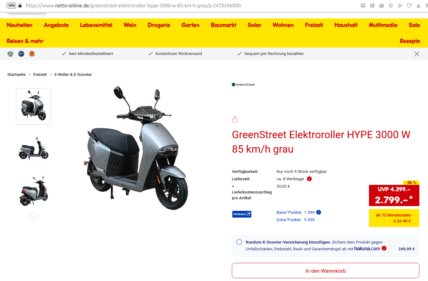 Im Prospekt von Netto vom 01.05.2025 wurde er übrigens noch zum Preis von 2.899 €, also 100 € mehr wie jetzt, angeboten.