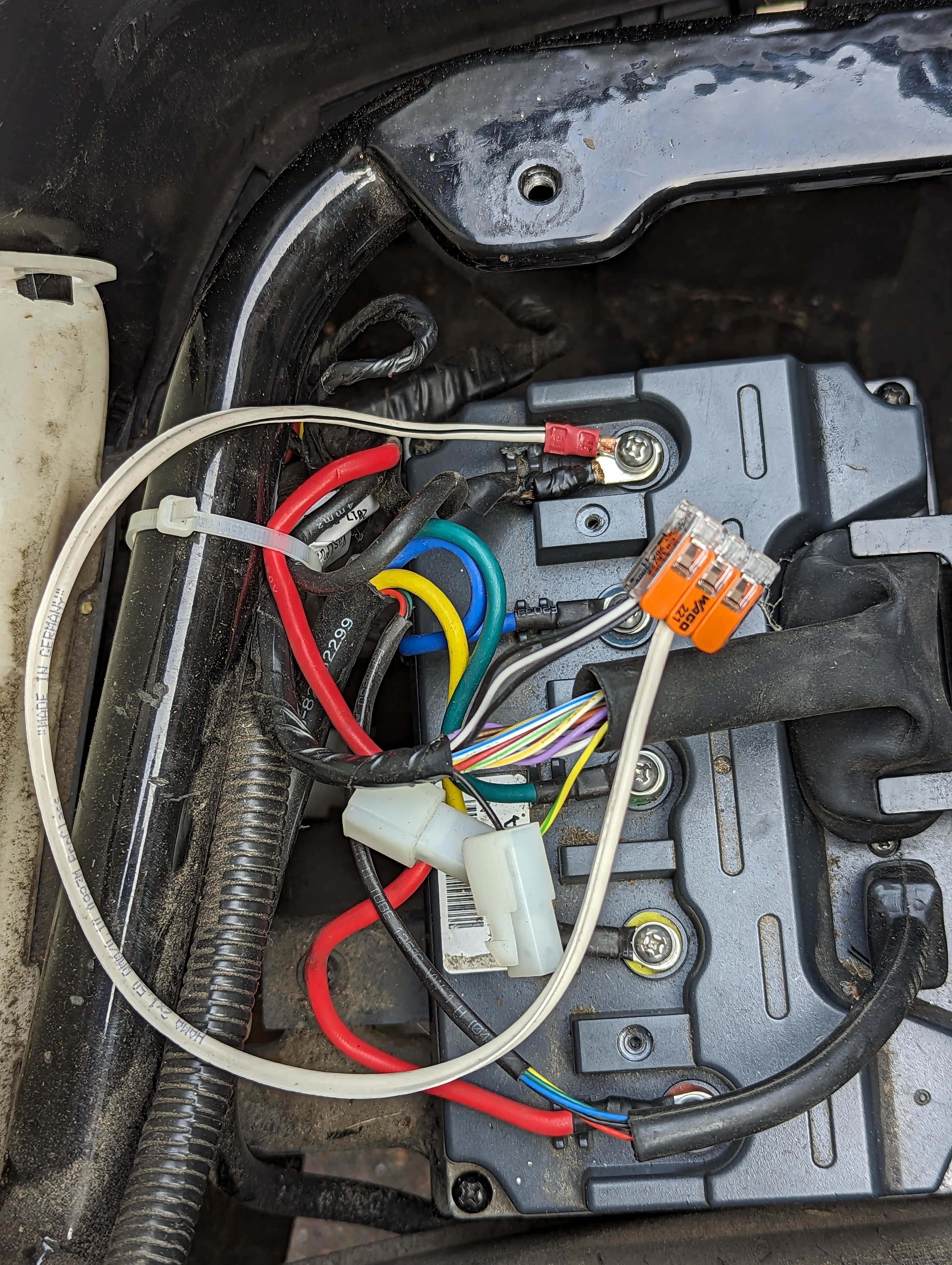 Ich habe dann die drei Masseleitugen von Pin 16 abgekniffen, verlängert, und direkt mit einer Ringöse auf [Batterie -] am Controller gelegt.